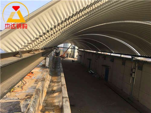 3. 抗風(fēng)與防滲能力強(qiáng):該結(jié)構(gòu)在面對強(qiáng)對流天氣時(shí)能更有效地分散風(fēng)壓,拱形波紋鋼板接縫緊密,具備良好防水能力。
