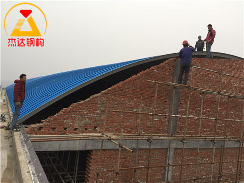 拱形屋頂的磚混結構山墻施工需要土建施工單位和拱形屋頂施工單位的緊密配合。施工過程中,設計拱高尺寸由拱形屋頂施工方提供,土建單位據此預留足夠高度以便后續安裝,保障整體施工質量與進度。