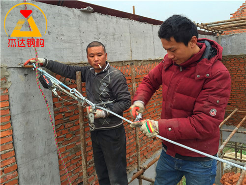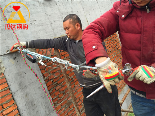 圖中展示了鋼絲繩拉緊裝置的現(xiàn)場(chǎng)應(yīng)用,反映出施工環(huán)節(jié)的技術(shù)細(xì)節(jié)和操作規(guī)范,有助于提升整體工程質(zhì)量。