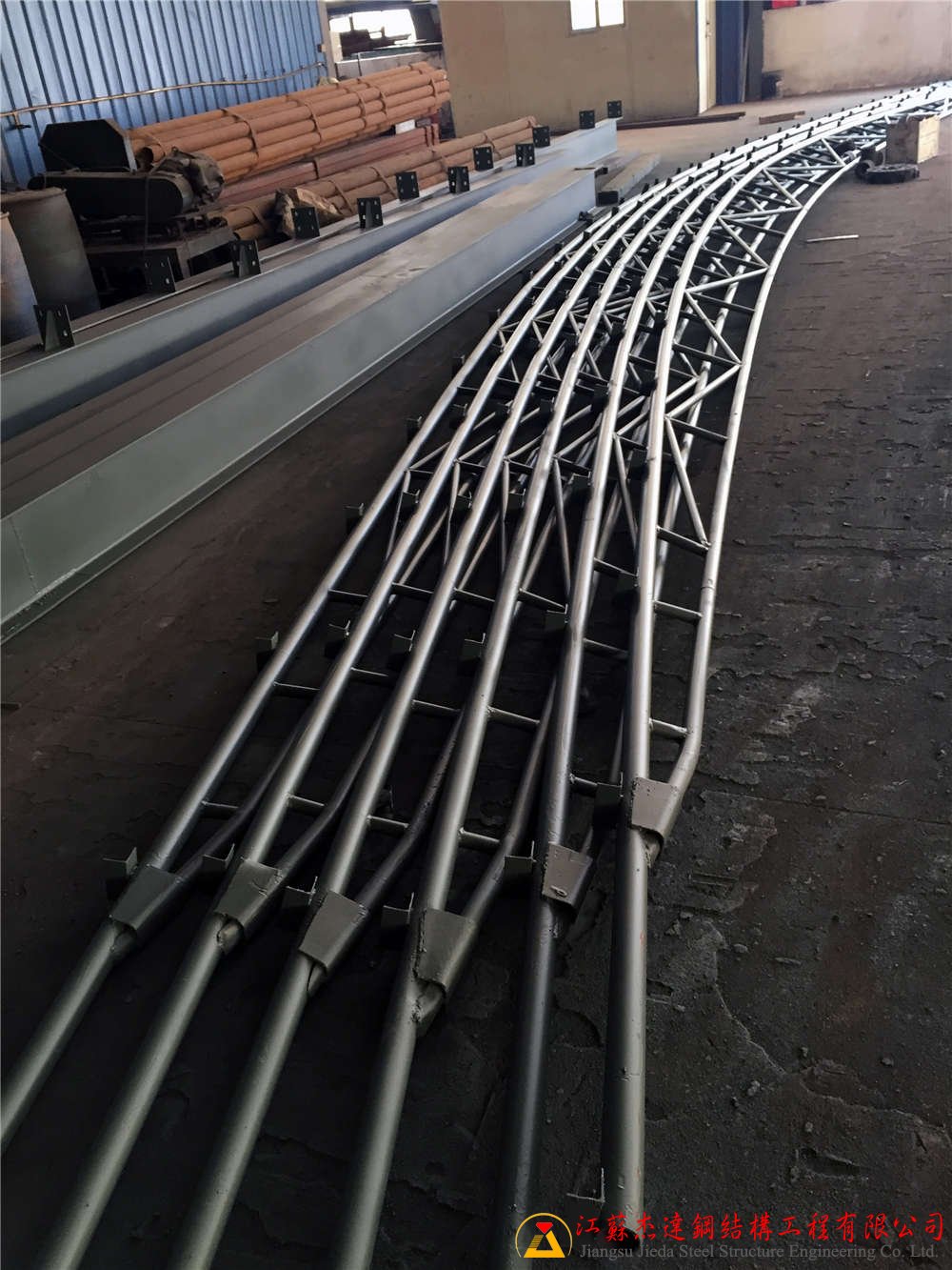 今年的3月江蘇杰達鋼結構工程有限公司,在鹽城地區施工了很多商品混凝土公司的堆料車間,這間車間由于跨度大,杰達鋼構的技術人員采用了做圓弧梁的施工方法。這些堆料車...