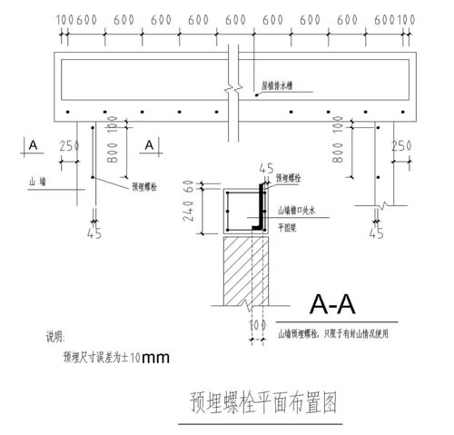 U型磚混結構連跨拱形屋頂安裝節點圖