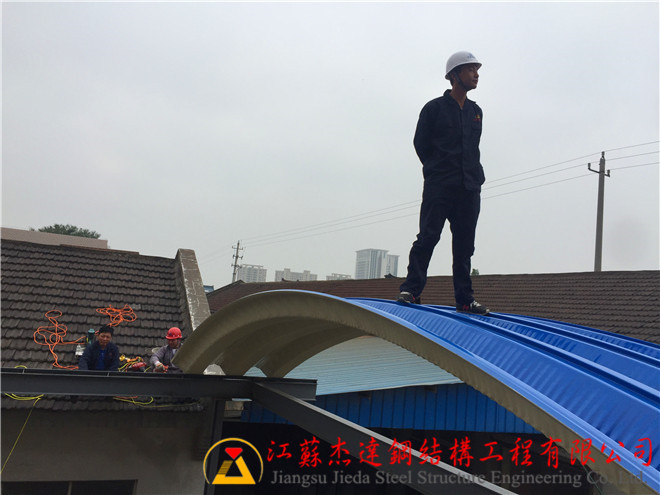 工程名稱:揚州江都電子廠小跨度拱形屋頂加工安裝工程