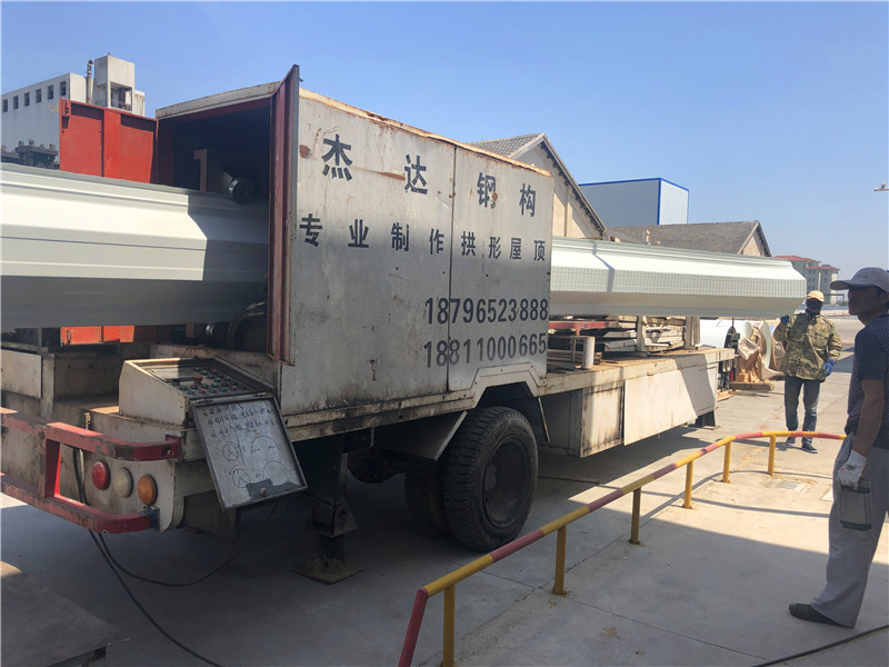 壓瓦設備也已提前運抵現場,拱形屋頂單元瓦片在施工區就地壓制,確保尺寸精度與安裝銜接。