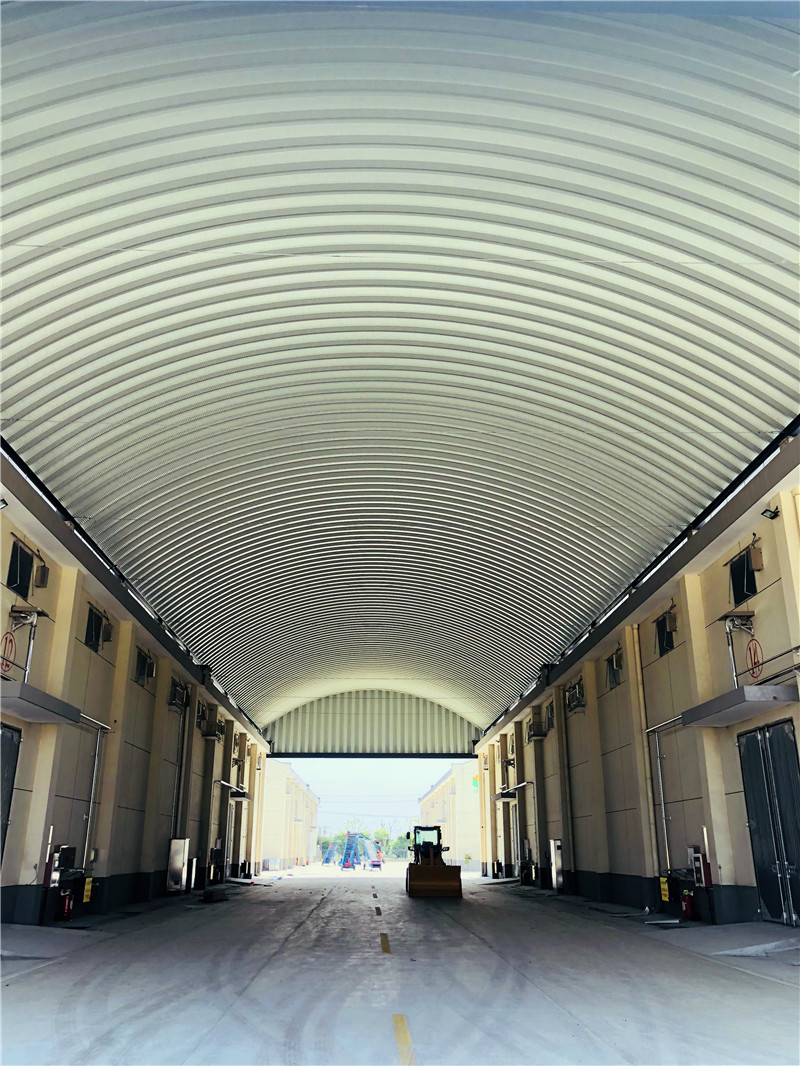 江蘇揚(yáng)州高郵糧庫拱形屋頂罩棚工程