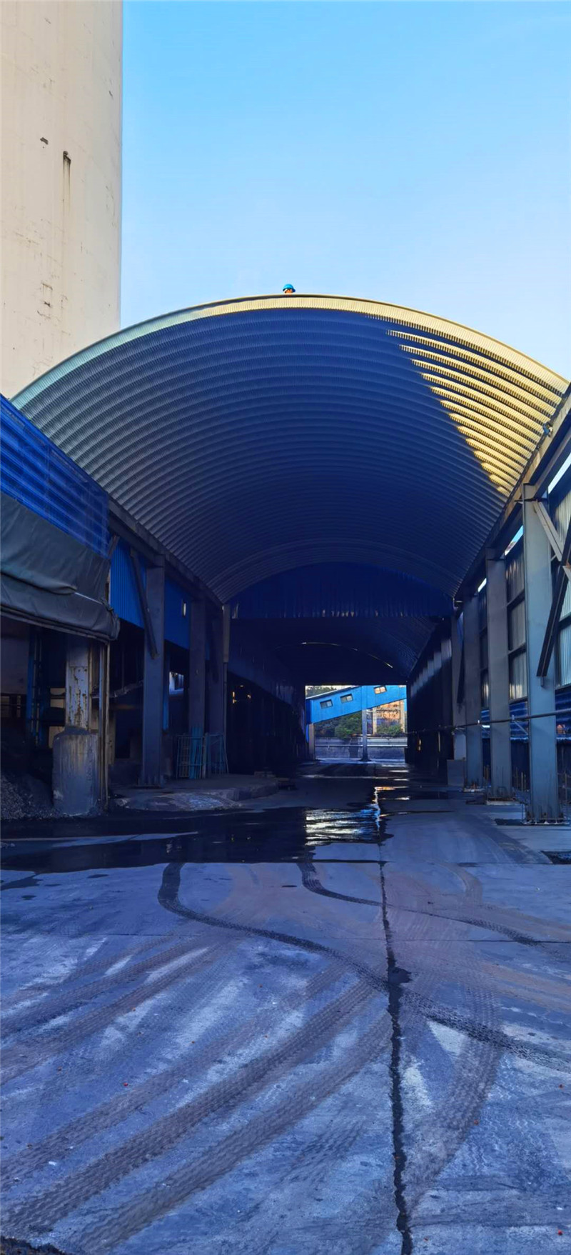 金屬拱形結構安裝完成后,進入了待驗收階段。該結構設計不僅滿足煤棚的防護要求,還考慮了空間利用,便于后續裝載機等設備的運行和物料的裝卸操作。