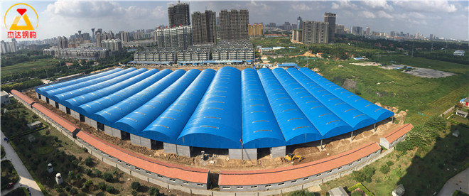 施工速度快——壹天時間建筑面積可達1000平方米,在必要時,還可將建好的彩色鋼板拱型屋頂開封,搬至異地重建。